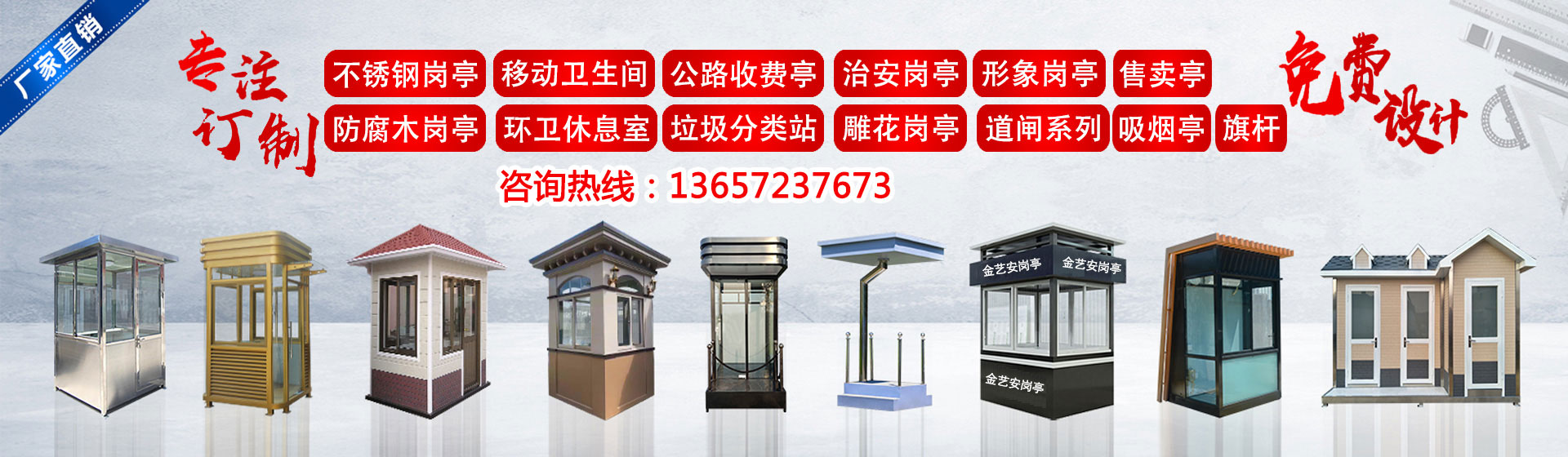 武漢金藝安金屬制品有限公司(簡(jiǎn)稱JYA)是一家專業(yè)從事設(shè)計(jì)、生產(chǎn)制作加工、銷售及售后服務(wù)一體化,為客戶提供建筑/交通/市政配套設(shè)施一站式服務(wù)企業(yè)。主營(yíng):不銹鋼崗?fù)?,值班崗?fù)?,形象崗臺(tái),防彈崗?fù)ぃ紘娖釐復(fù)?,治安崗?fù)?、景觀崗?fù)ぃ圬浲?,停車?chǎng)收費(fèi)亭、高速公路收費(fèi)亭,不銹鋼旗桿,錐型旗桿,電動(dòng)旗桿等系列產(chǎn)品。廣泛應(yīng)用于:學(xué)校,廣場(chǎng),體育場(chǎng)館,軍隊(duì),酒店,企業(yè)單位,小區(qū)停車場(chǎng),學(xué)校,醫(yī)院,工廠、市政交通收費(fèi)、平安城市管理、景觀環(huán)境美化等領(lǐng)域。 我們不斷發(fā)展壯大,秉承“品質(zhì)、信譽(yù)、服務(wù)”的經(jīng)營(yíng)理念參與市場(chǎng)競(jìng)爭(zhēng),堅(jiān)持高技術(shù)、高品質(zhì)、高效率的方針,結(jié)合用戶需求,不斷推出新產(chǎn)品,樹立品牌優(yōu)勢(shì)。擁有經(jīng)驗(yàn)豐富的專業(yè)設(shè)計(jì)師和質(zhì)量過硬的施工,銷售服務(wù)網(wǎng)絡(luò)遍及全國(guó)各地。 我們的宗旨:誠(chéng)實(shí)守信, 追求卓越, 客戶至上。今后公司將一如既往,腳踏實(shí)地,與用戶攜手合作,共創(chuàng)輝煌!...